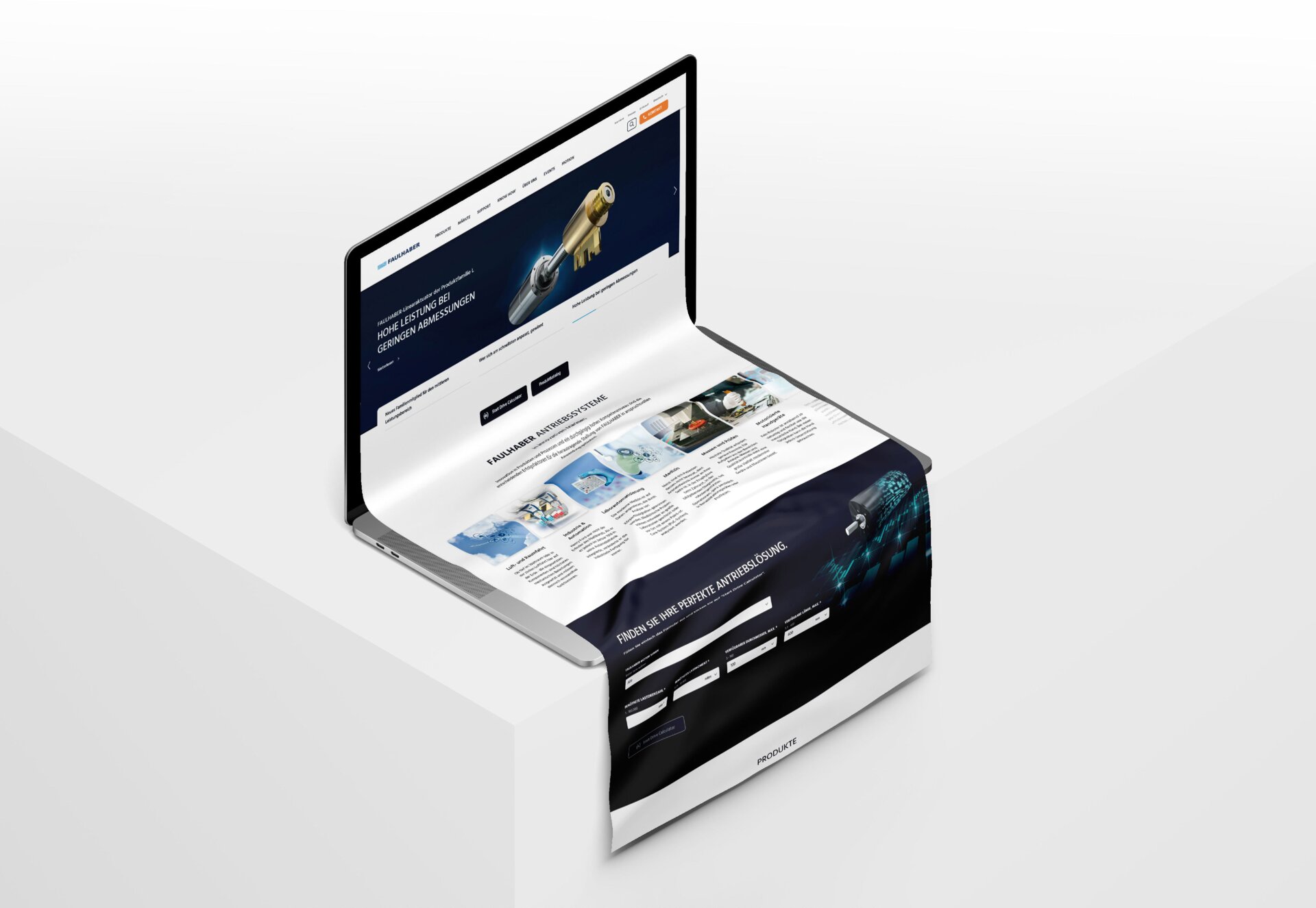 Wer bei der Produktrecherche in die Sackgasse gerät, biegt zur Konkurrenz ab. Das Konzept der optimierten FAULHABER Digital-Plattform sorgt für komfortable Abkürzungen in der User Journey und schnelle Kontaktaufnahme mit dem Vertrieb.